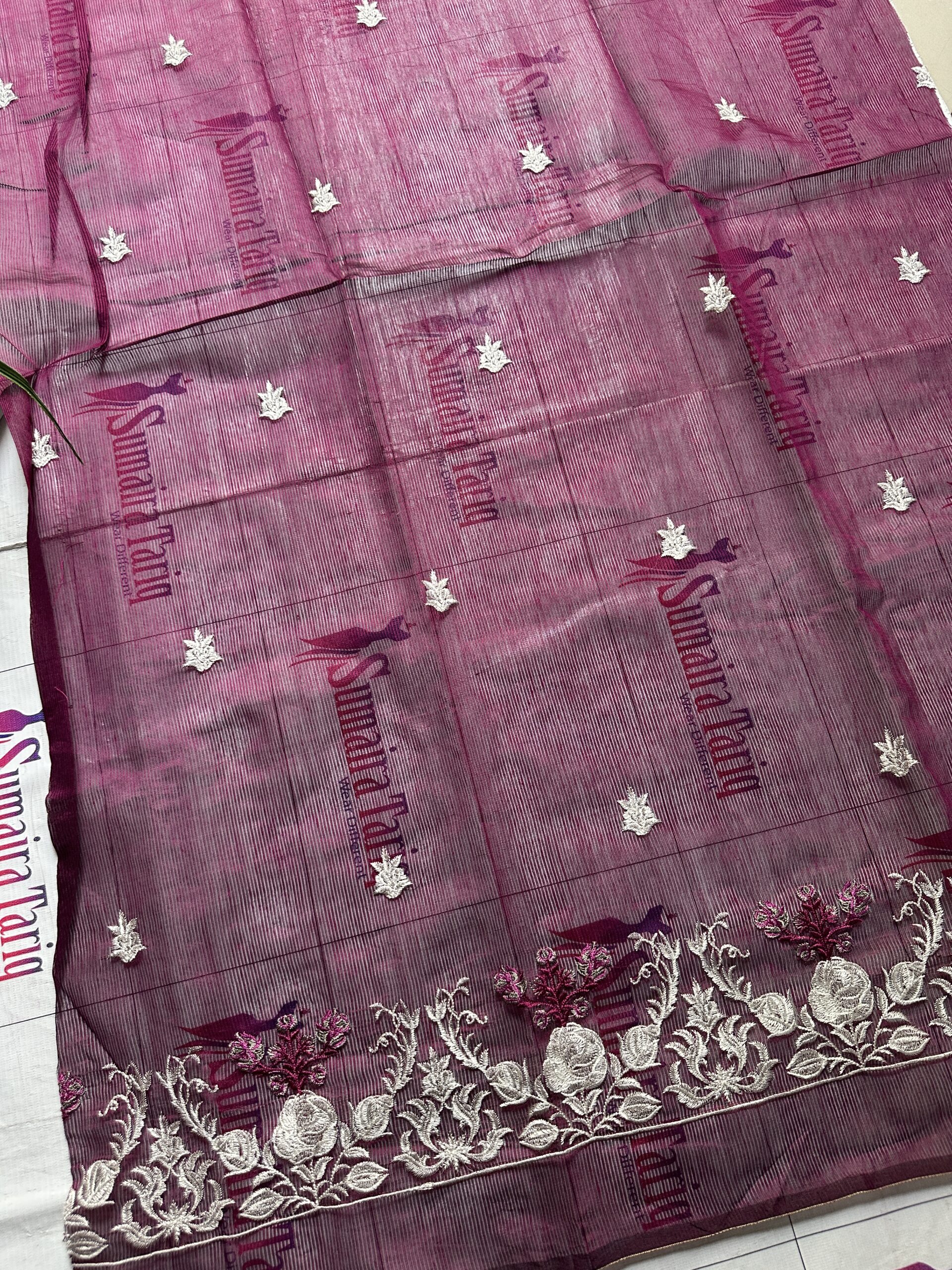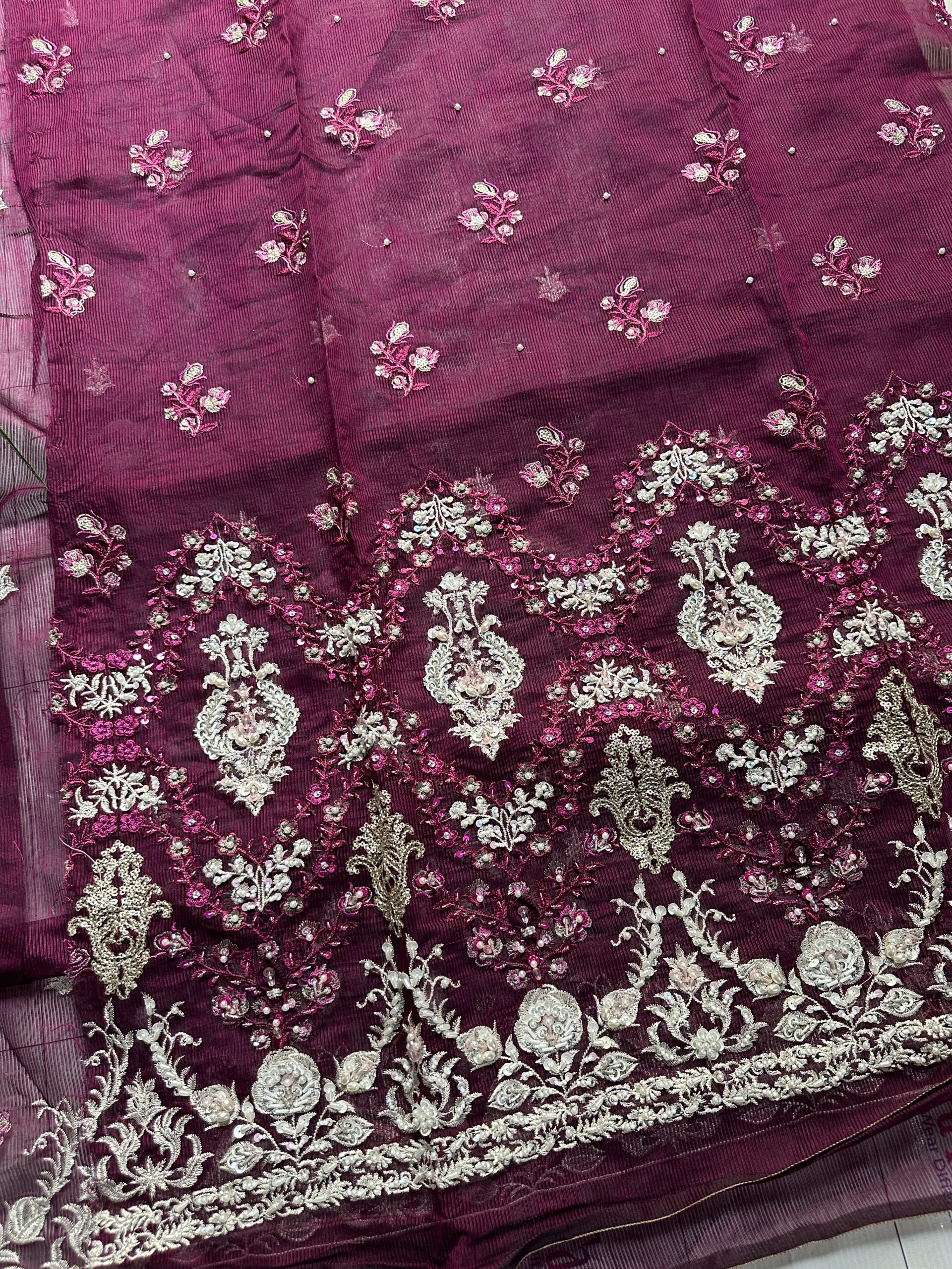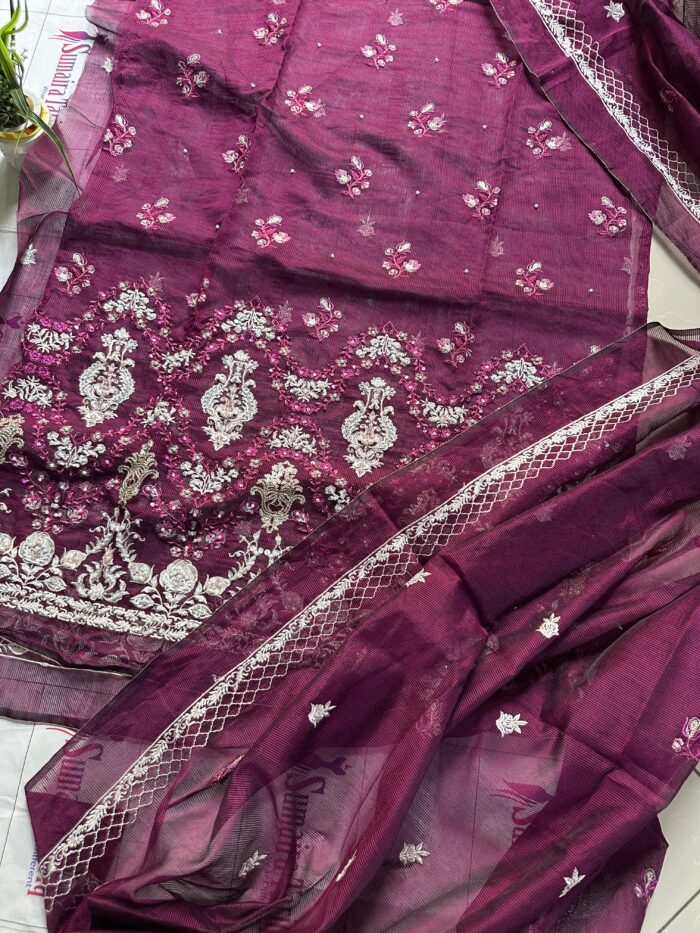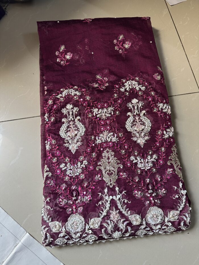 Shirt: unstitched with 3d embroidery handwork with pearls sequences Swarovski and 3d petals.