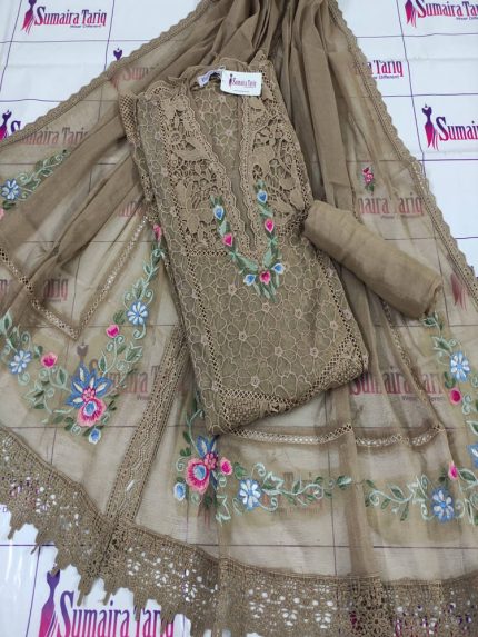 Duppata: ready to wear khaadi net duppata with laces,and velvet embroidery work.