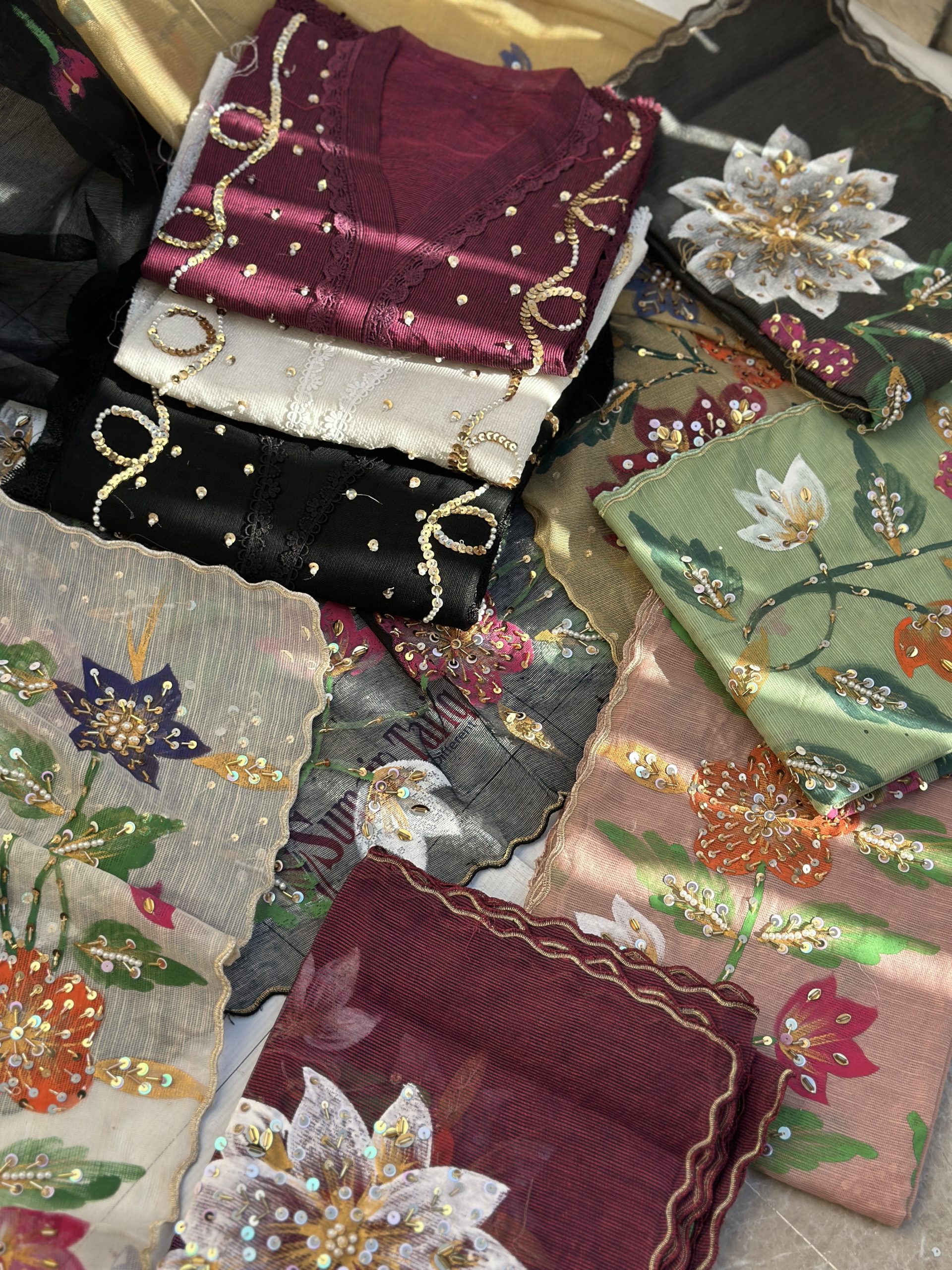 Duppata: 2.75 yards ready to wear handpaint and handwork duppata.